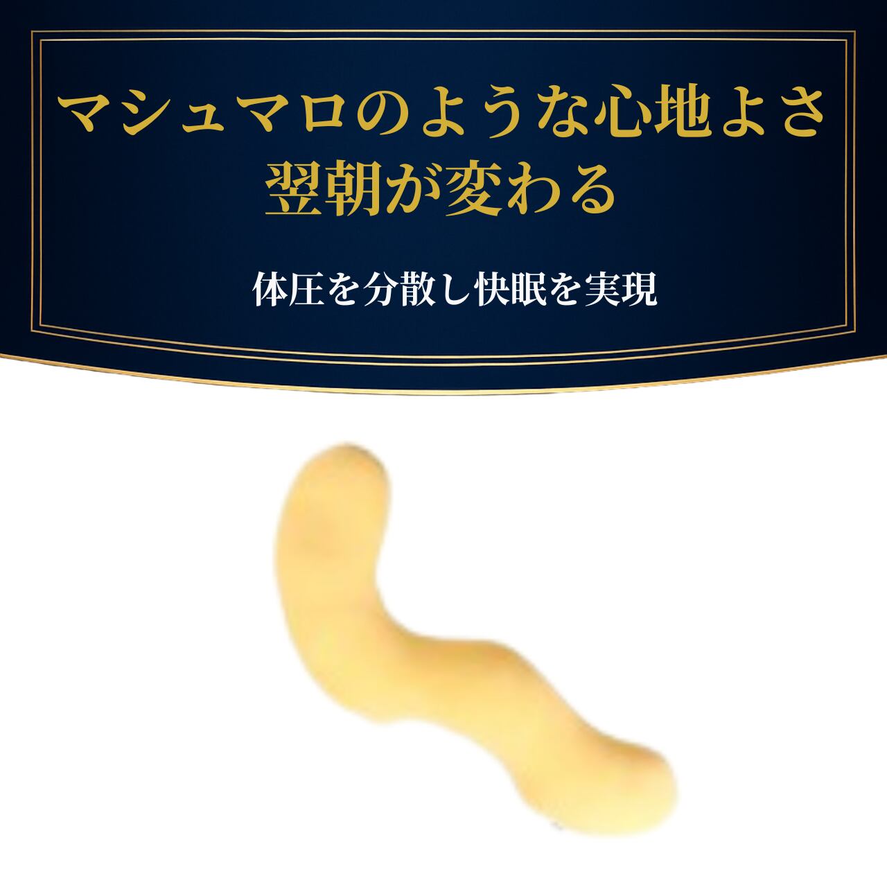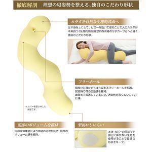 特長:カバー取り外し可能、こだわり形状(生理的湾曲)、フリーホール(就寝時の耳の圧迫感を軽減)、内部立体構造(中材の逆流を防ぎ、頭部のボリューム感を維持)、型崩れ防止(本体・カバーの両端に伸びない生地を使用し、最適な形状をキープ)